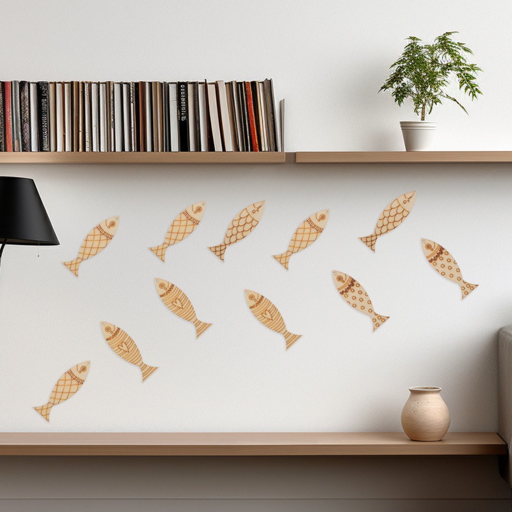 50 Pcs Painted Fish Pendant Diy Wooden Animal Child Unfinished Sea Animals
