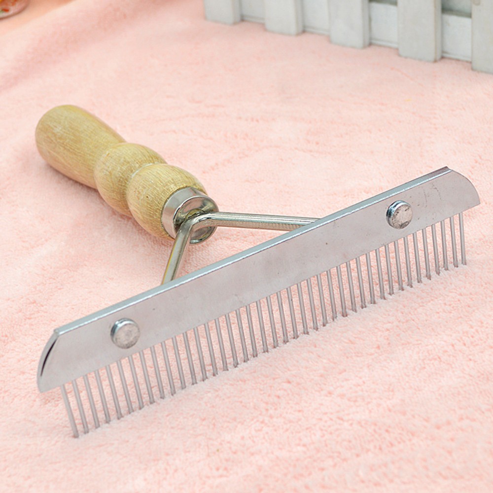 Wooden Handle Comb Stainless Steel Pet Grooming Portable Trimmer