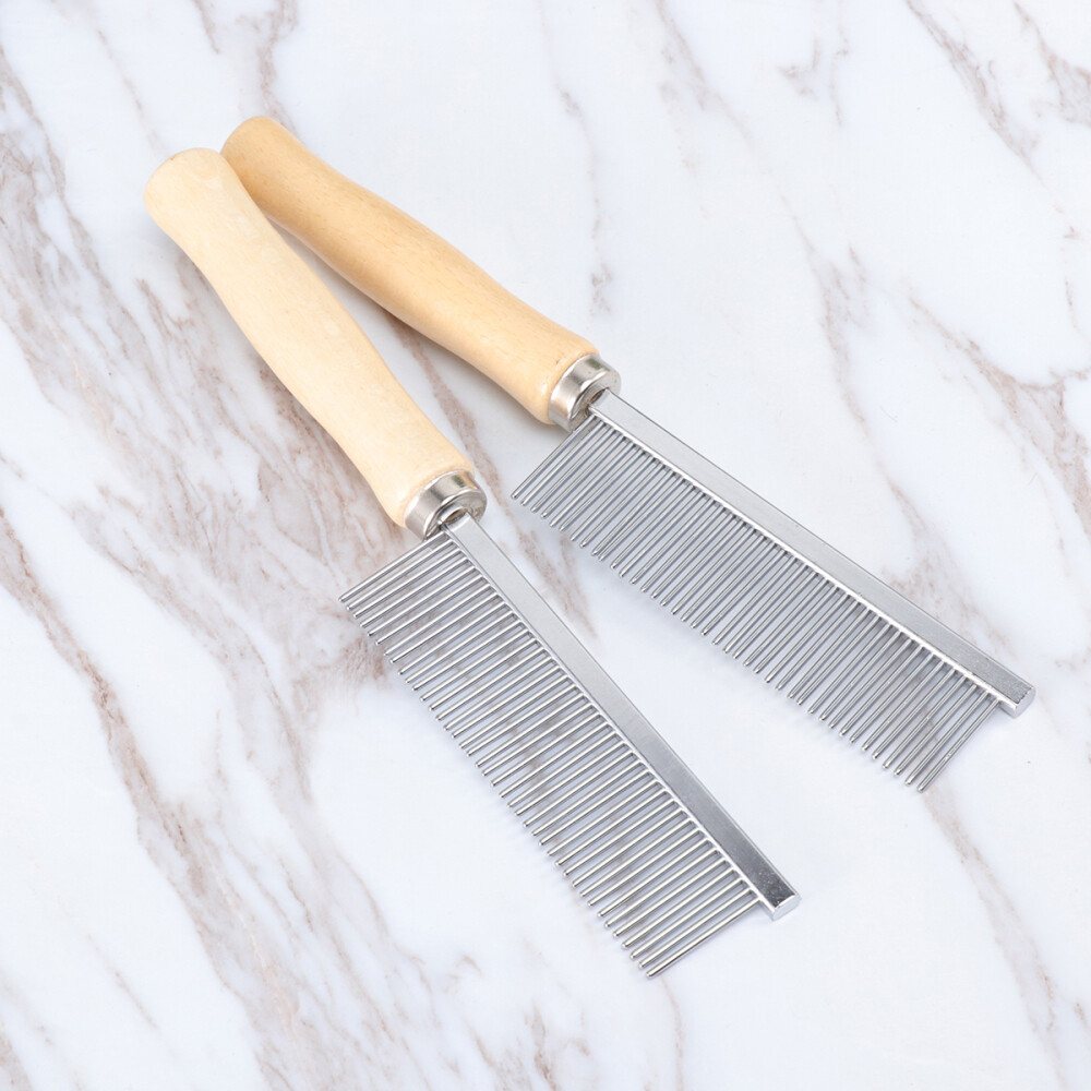 2pcs Pet Wood Handle Comb Pet Cleaning Comb Stainless Steel Pin for Dog Puppy